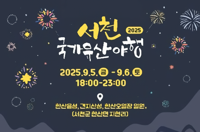 한산읍성 일원에서 열리는 서천국가유산야행은 건지산성과 한산읍성을 배경으로 공연·체험·장터 등 8개 테마 프로그램을 선보인다.