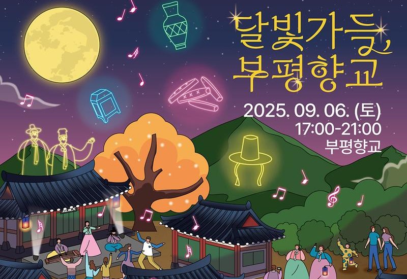 9월 6일 하루 동안 부평향교에서 전통문화 체험과 야간 음악회가 열린다. 주민과 방문객은 달빛 아래 향교의 역사와 풍류를 함께 즐길 수 있다.